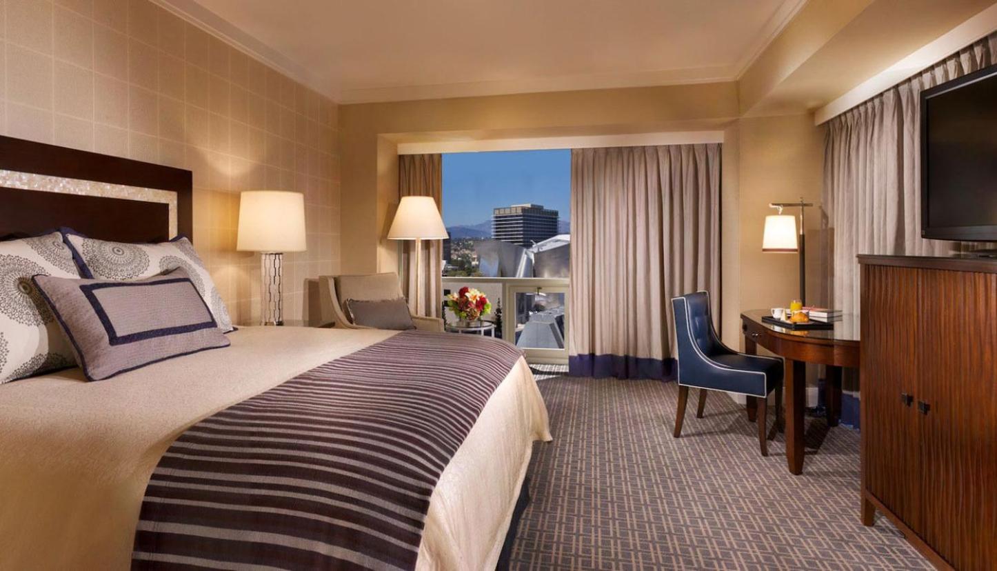 The gallery of Omni Los Angeles Hotel showcases its blend of urban modernity and understated luxury. Images reveal sleek guest rooms with tall windows framing the city, while polished marble bathrooms add elegance.